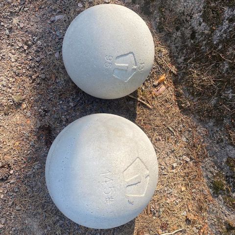 Sitten on 2 kpl lieriön muotoisen valkoisia, ehkä n. 140-150 kg/kpl sekä yksi painavin(pumpun päällä vasemmalla ylhäällä)