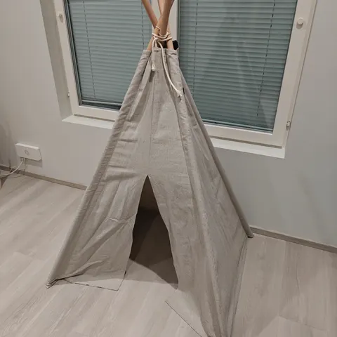 Newbien lukuteltta, jossa on röyhelöt yläosassa ja tupsut. Valmistettu 100 % luomupuuvillasta. Teltassa on pehmustettu pohja, joka on kiinnitetty telttaan. Yläosassa on solmittava nauha ripustamisen helpottamiseksi. Yläosassa on vakauden parantamiseksi huomaamaton nauhakiinnitteinen metallirengas ja aukon yläpuolella on Newbie-etiketti. Tarranauhakiinnitteiset tupsut roikkuvat teltan sisällä eri korkeuksilla