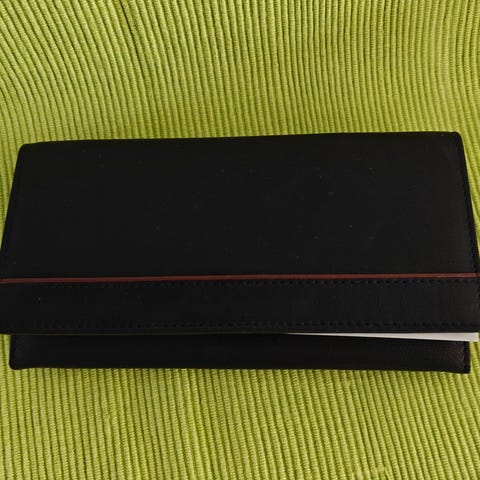 Vähäisellä käytöllä ollut lompakko. Tuotu jenkeistä. Mitat: pituus 18cm, leveys 10cm, syvyys 2cm.