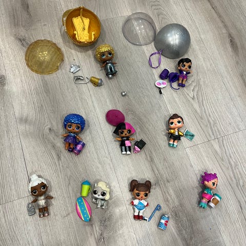 Myydään 5 kpl L.O.L-surprise-nukkeja, joista yksi on kissa. Kotelot mukaan!