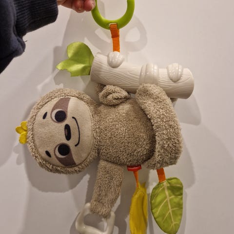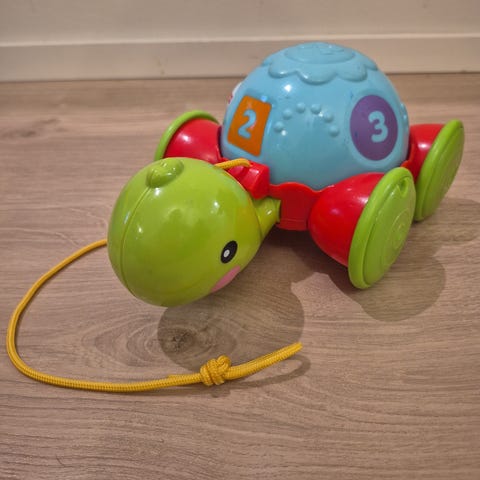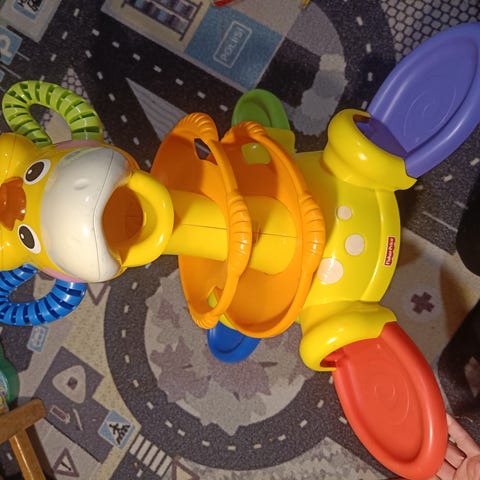 Jouluksi pakettiin toimiva lelu. Pallo laitetaan suusta ja se menee johonkin neljästä jalasta.