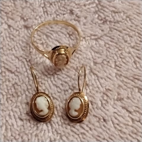 585 kultaa, paino yht. N.2,7gr. Kaiverrukset.