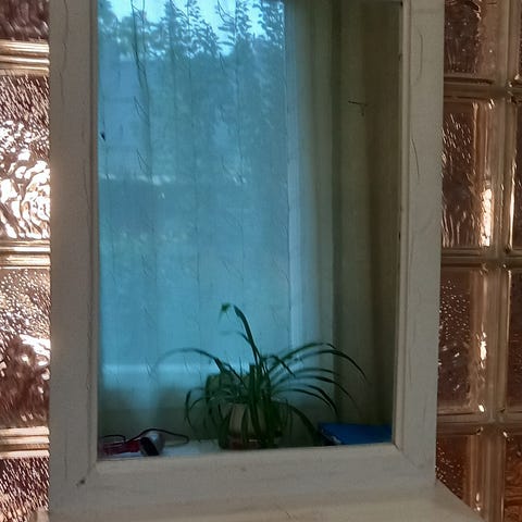 Mosaiikkipaloista tehty vanha peili. Painava, ehjä ja siisti.