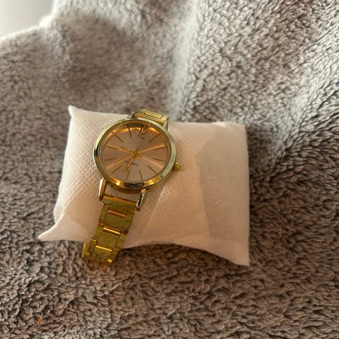 Anne Klein naisten rannekello, ruusukullan värinen. Kellotaulun halkaisija 35mm. Ranteen koko 15 cm, jatkopaloja ei mukana. Sopii arkeen ja juhlaan. Patteri vaihdettu äskettäin.