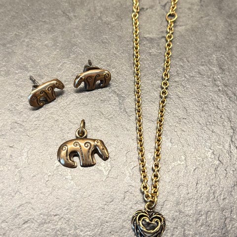 Kalevala Talonsydän pronssinen korusetti naisille. Setti sisältää kaksi kaulakorua, rannekorun, kahdet korvakorut ja sormuksen. Koko setti 165€. Järkeviä tarjouksia kuunnellaan. Jos et haluaa ostaa koko settiä, voit tarjota hintaa yksittäiselle korulle. Mieluiten nouto.