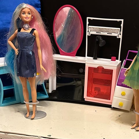 Barbie kampaamo/meikkistudio tarvikkeet ja kalusteet (monta kuvaa!)