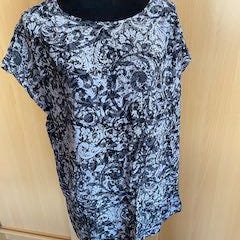 Järvi Muoti-pusero 100% silkkiä, naisten koossa M. Kirjavat kukka- ja ananaskuvioinnit mustalla pohjalla. Sopii arkikäyttöön ja rentoihin tilaisuuksiin, tässäpä lahjaidea Suomidesignin ystävälle<3
