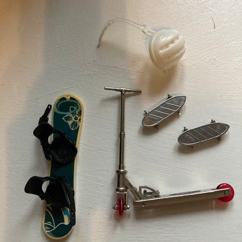 Erilaisia barbie tarvikkeita, kuten pieniä laukkuja, puhelimia & tietokone, henkareita ja muita miniatyyriesineitä. Ja barbie pöytä. Soveltuu leikkimiseen ja keräilyyn.+ voin myös myydä erikseen tästä, lähetä viesti niin keksitään jotain!