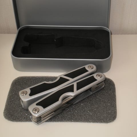 Monitoimityökalu sisältää pihdit, veitsen, viilan, korkin avaajan, meisselin, purkin avaajan ja vaikka mitä muuta.