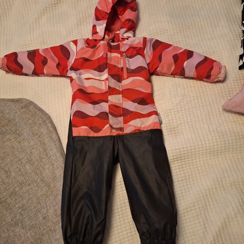 Lassietec ohuesti vuorattu talvihaalari vetoketjutaskulla ja irrotettavalla hupulla. Lahkeessa tahraa, en ole yrittänyt poistaa. Kangas samantyyppistä kuin Reiman Stavangerissa, kestävää, pepusta ja polvista hieman pehmentynyt. Lenksut puuttuvat, voin korvata reikäkuminauhasta tehdyillä jos nousee kynnyskysymykseksi.