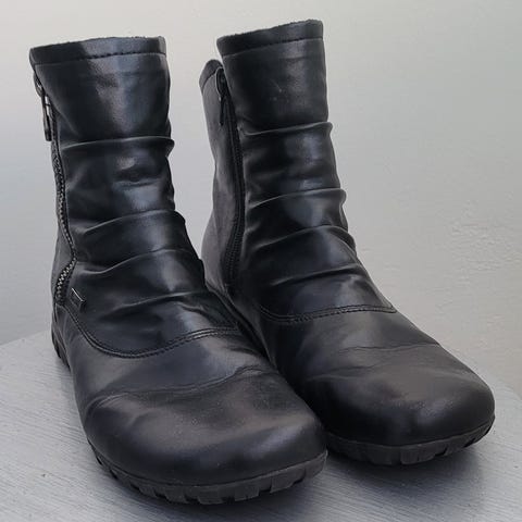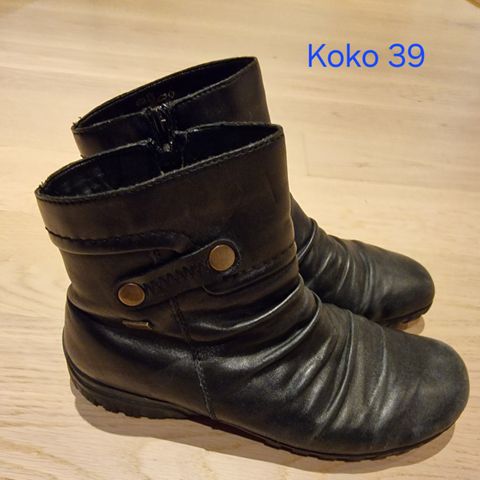 Nahkaiset nauhalliset talvikengät. Vetoketju sivussa.