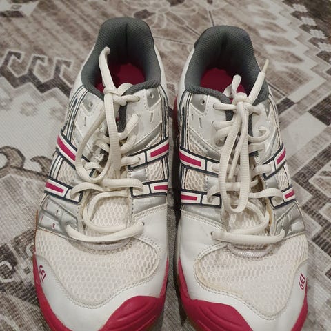 Asics Gel Fastball sisäpelikengät. Virallisesti kokoa 7,5 = 39, mutta ovat pientä kokoa ja sopivat n. kokoa 37 käyttävälle. Erittäin siistissä kunnossa, ei käytön jälkiä.