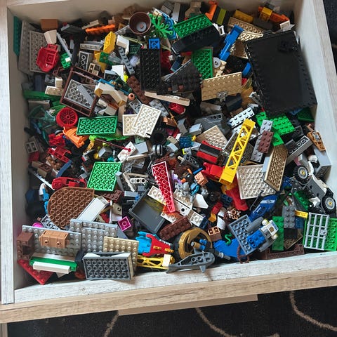 Ostan isomman erän pikkulegoja kerralla. Sekalaisia, ohjeita ei tarvitse olla tallella.