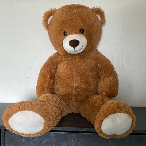 Kuvassa oleva iso beige nalle ,siisti ja hajuton , koko n.88 cm x 30 cm,hännän alla ja tassussa tahra ,lähtenee pesussa? 7€
