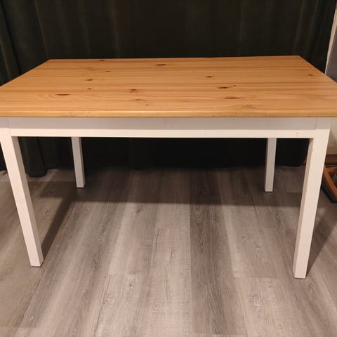 Ruokapöytä. Pieniä käytön jälkiä on, mutta yleisesti hyvässä kunnossa. Metallijalat.