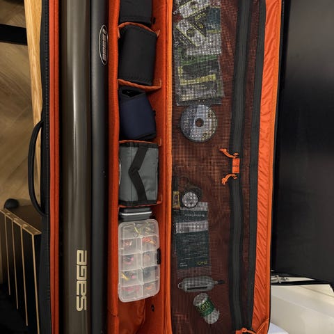 Hyvä kuntoinen laadukas Simssin slingi. Tämä on aikaisempi Headwaters malli, ei uusin. Ollut vähäisellä käytöllä, laitetaan kiertoon. Mukaan tulee siimarullan ja kelluntainepullojen pidike.