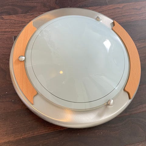 kattovalaisin, jossa modernia ilmettä. Kolme haaraa, joiden päässä valoa kauniisti levittävä lehtimäinen varjostin. Ei häikäise. Lampunkanta E14. Led-hehkut saa kaupan päälle. Korkeus noin 45 cm. Yhden haaran pituus noin 61,5 cm. Johdon pituus 2 m.