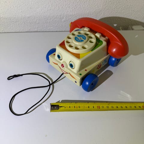 Fisher-Price leikkipuhelin on lasten lelu, joka muistuttaa vanhaa pyöritettävää puhelinta.