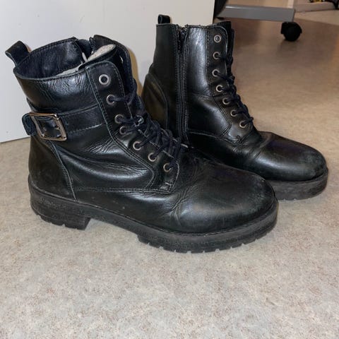 Myydään UGG henkiset, lampaannahkaiset talvisaappaat kokoa 38. Saappaissa on erittäin muhkea ja paksu lampaanvillavuori ja mokkanahkainen ulkopinta. Kengät ovat hyvässä kunnossa, toisessa kengässä on kosteuden aiheuttama tahra (näkyy kuvissa, mutta luonnossa ei juurikaan). Pohjat ovat ehjät. Nämä kengät ovat käytetyt ja sisältävät normaalia kulumaa, mutta ovat ehjät ja siistit.