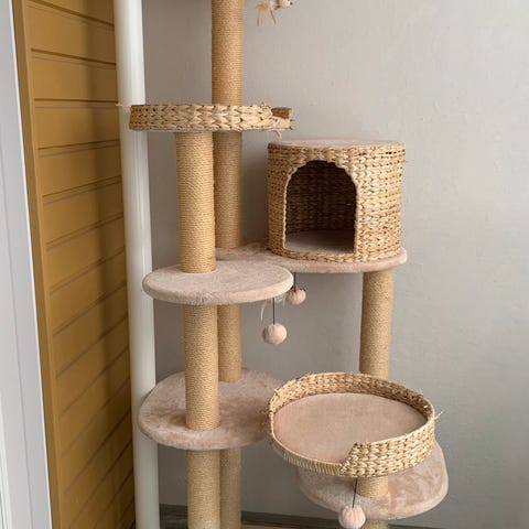 Muuton yhteydessä ja tilan puutteen vuoksi luopumaan tästä raapimispuusta. (kuvassa jo näkee että on purettu jo vähän jotta se mahtuisi tohon nurkkaan. Saatte lisää kuvia pyytäessä.
