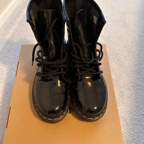 Olleet kaksi kertaa jalassa, mutta malli ei ole harmillisesti sopiva omalle jalalle. Lesti on myös melko napakka. Toisesta kengästä vaihdettu vetoketjun vedinosa. Paksua ja jämäkkää nahkaa ja pohjien kuviointi sellainen, että Suomen oloissa pysyy liukkaillakin pystyssä. Oikean jalan kengän kärjessä pieni jälki (viimeinen kuva)
