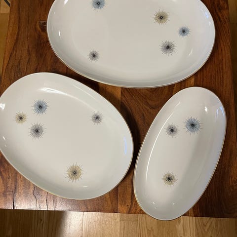 Arabia Jupiter iso lautanen, tarjoiluastia, tarjoiluvati, halk. 31 cm, suunn. Raija Uosikkinen, katso myös muut Arabia Jupiter astiat
