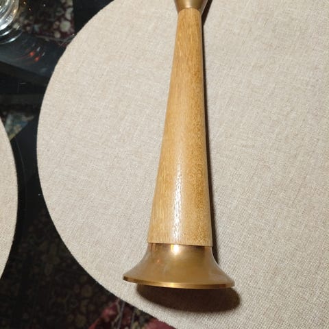 Martti metallin valmistama. Kaunis kuparista ja puusta valmistettu 23cm korkea kynttilänjalka. Jonkin verran ajan patinoima.