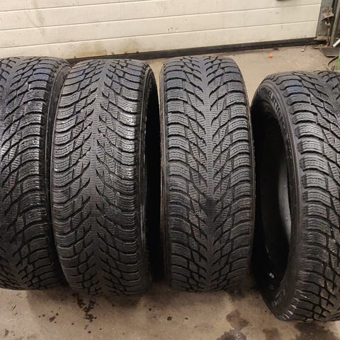 Hyvät Nokian Hakkapeliitta R2 kitkarenkaat pintaa 7mm ja VSP Italy vanteet 8.5x19 et 43. Olleet autossa Mercedes R350.
