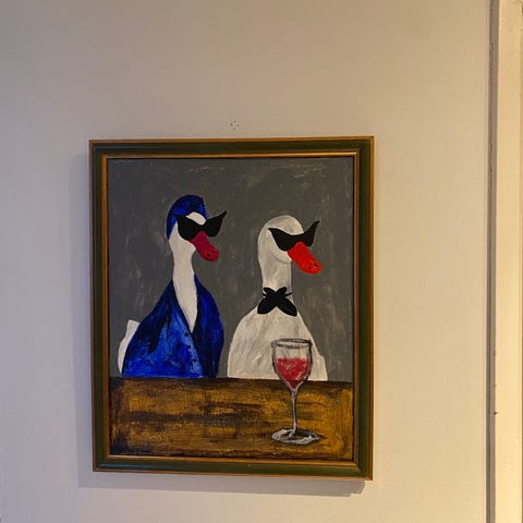 Itse tehty maalaus, canvaspohja, valuva logo johon lisätty myös glitteriä.
