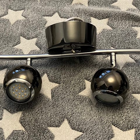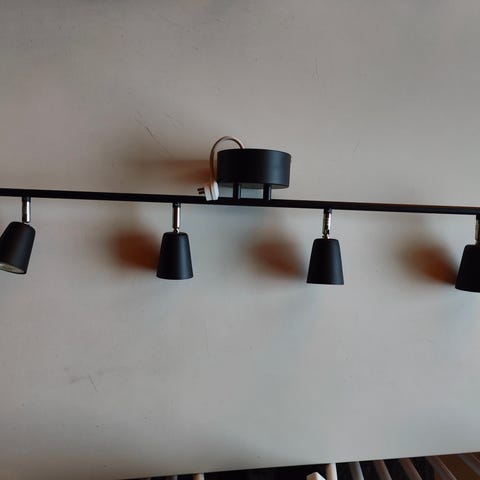 Myyntiin toimivat kattospotit. 8€ kpl tai 20€ kaikki. Reunoissa vähän maalia, mutta lähtee raaputtamalla.
