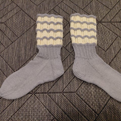 Uudet, käsinneulotut villasukat. Koko 38-39. Pohjan pituus 24,5cm ja varren pituus 20cm. Lanka 75% villaa, 25% polyamidia. Kestää konepesun 40 asteessa.
