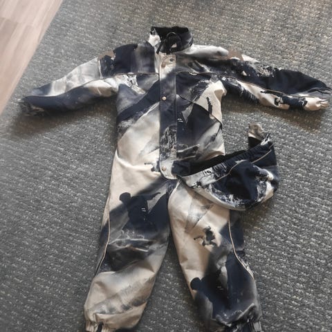 Myydään molon talvipuku. Koko 116. Käytetty enemmän ja polvissa kulumaa.