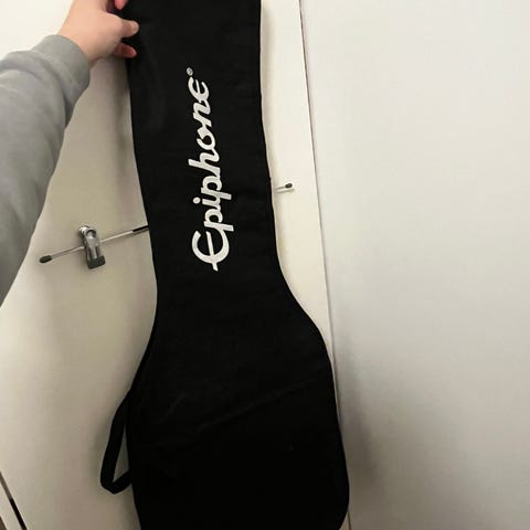 Musta kitarapussi, joka on suunniteltu kitaratarvikkeiden kuljetukseen ja säilytykseen. Pussissa on olkahihna ja useita taskuja lisätarvikkeiden säilyttämiseen. Materiaalina kestävä kangas. Hinta 6 euroa.