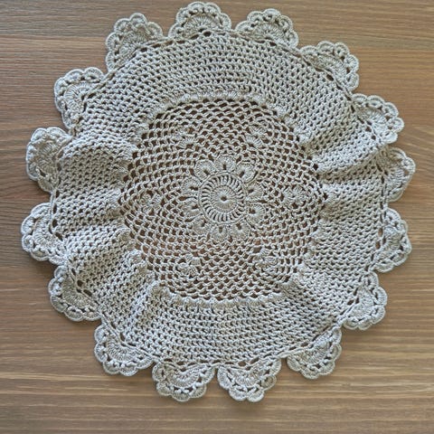 Brysselistä ostetut pitsiliinat 3 kpl, väri luonnonvalkoinen. Yhteensä 8e. Isompi halkaisija n. 43cm ja pienet n. 20cm.