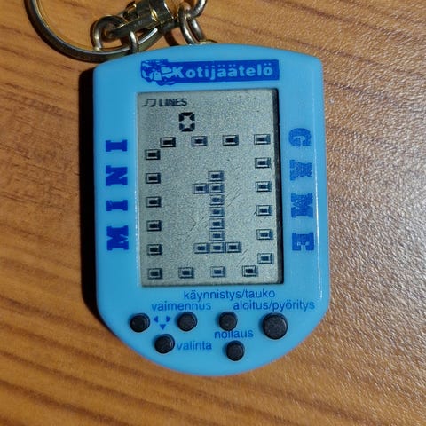 Retro käsipelikonsoli 80- luvulta. Siisti ja ehjä. Äänet ja kaikki toimii. Ainoastaan pakkaus kärsinyt.