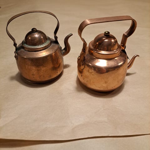 Pieni kuparinen kahvipannu kahva ylhäällä noin 17 cm korkea, halkaisija noin 15 cm, hintaan 15 euroa. Yhden kupin kahvipannu 10 euroa. Kuparilautaset 2 kpl halkaisija noin 30 cm yhteensä 10 euroa. Varrellinen iso kupariastia korkeus noin 16 cm, suuaukko 17 cm, korkeus 25 cm ja varsi 17 cm hintaan 35 euroa. kysele muiden kupari astioiden hintaa myyn ne edullisesti.