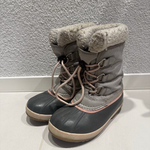 Sorel lasten talvikengät, koko 32, unisex. Kengissä on lämmin vuori ja ne soveltuvat kylmiin sääolosuhteisiin. Musta väri ja vedenpitävä materiaali tarjoavat suojaa lumelta ja kosteudelta.