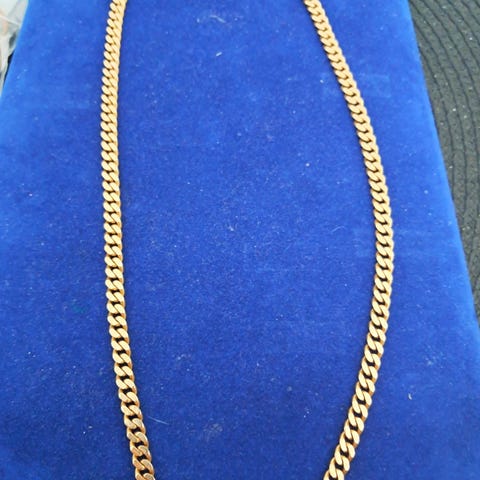 Hyväkuntoinen kultainen panssariranneketju.