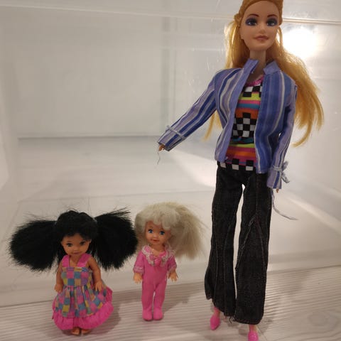 Myydään barbie äiti ja kaksi tyttöä. Hyvä ja siisti kuntoisia. Myydään pakettina. Ei tietoa onko barbie merkkisiä vai jotain muita.