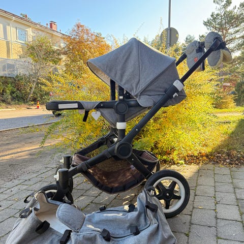 Runko on vuodelta 2015. Kaikki kankaat on uusittu vuosina 2020-2022. Kankaat ehjät eikä niiss ole haalistumia. Rattaissa adapteri Bugaboon istumalaudalle. Mukaan tulee musta hyttysverkko (ei Bugaboo).