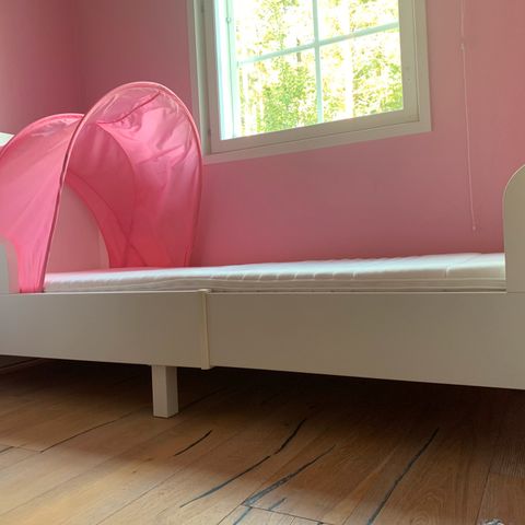Ikea Busunge jatkettava sänky + jatkettava patja + sijauspatja + katos