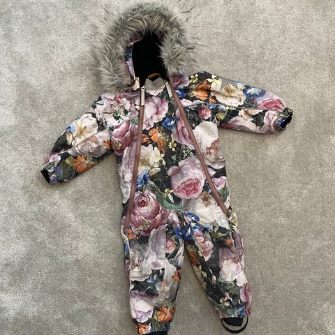 Molon ihana snowy leopards toppahaalari koossa 86. Päällisin puolin todella siisti edelleen. Pepussa ja polvissa pehmentymää, heijastin nauhoissa pientä kulumaa siellä täällä. Isommat heijastimet kunnossa. Ihana lämmin haalari!