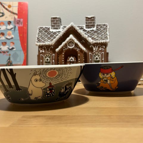 Arabia Muumi kulhot eri kuoseissa, värikkäitä ja kuvioituja. Sopivat keittiöön ja arkikäyttöön.