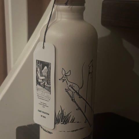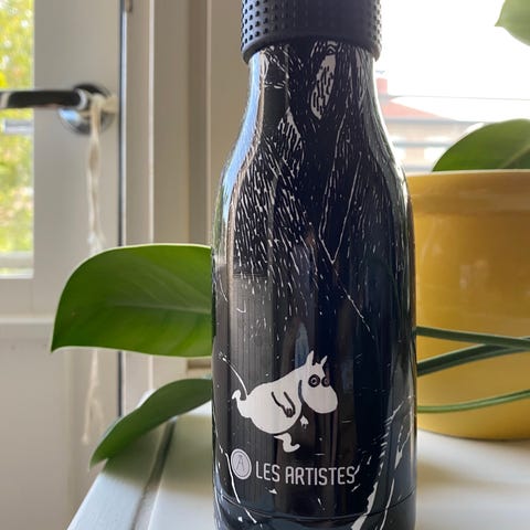 Les Artistes Bottle Up -termospullo, jossa on Muumi-kuvitus. Nämä pullot ovat eristettyjä ja suunniteltu pitämään juomat kuumana tai kylmänä pitkiä aikoja.