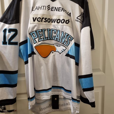 Pelicans Game Worn Heikkinen # 29.Pelicans jääkiekkopaita, koko XXL, sininen väri. Paita sisältää useita sponsorilogot, kuten Lahti Energia ja Versowood. Valmistettu urheilukäyttöön soveltuvasta materiaalista.Logo,numerot,nimi on ommellut.