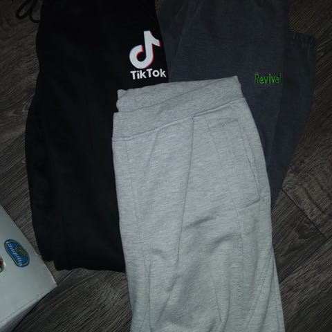 Kevyet verkkarit, vetoketjutaskut ja -lahkeet. Kiristysnauhat vyötäröllä, koko n. 158 (tummansiniset) / Kuva 1