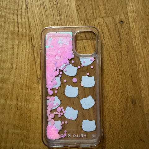 Apple Puhelimen kuoret, joissa on Hello Kitty -kuvioita. Kuoret ovat läpinäkyvät ja sisältävät vaaleanpunaisia ja valkoisia koriste-elementtejä. Suunniteltu suojaamaan puhelinta naarmuilta ja kolhuilta. IPhone 11