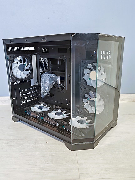 Darkflash DPX90 on tyylikäs ja näyttävä kotelo, jossa on kaksi karkaistua lasipaneelia ja 270° panoraamanäkymä ilman tukipilaria.