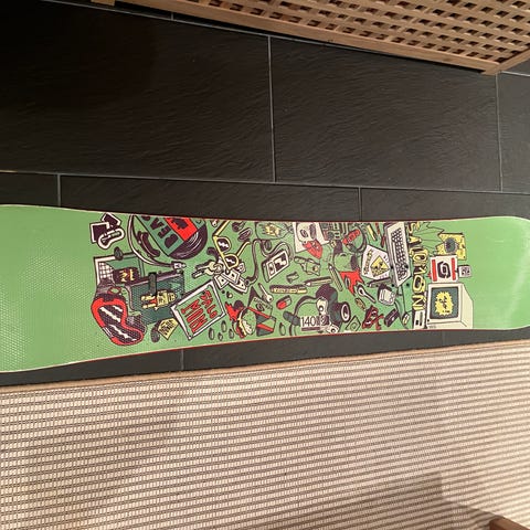 Salomonin lumilauta vihreä kuvioinnilla. Mukana Headin siteet.