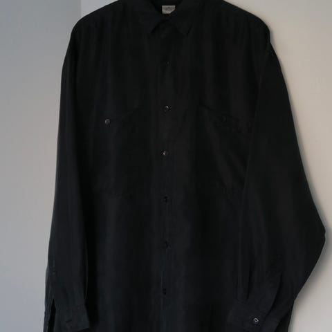 Impuls sininen vintage silkkipaita, hyvänkuntounen. Alunperin veikkaan että miesten, mutta sopii myös naisille, aika unisex mallinen. Taskut ja olkatoppaukset